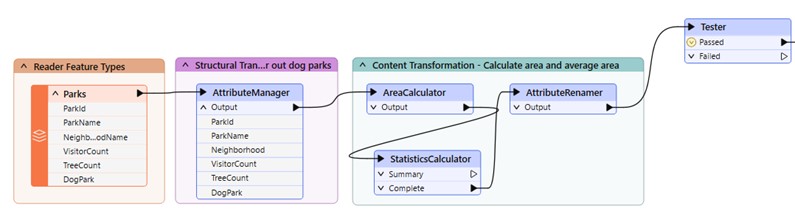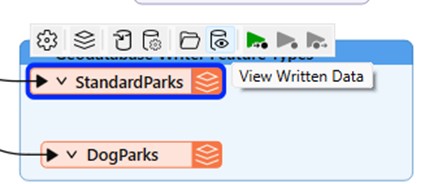 The *StandardParks* Feature Type can be connected to the “Passed” port of the Tester, as this is the output for parks that are NOT dog parks.