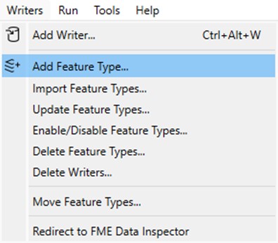 On the Menubar, navigate to Writers > Add Feature Type…: