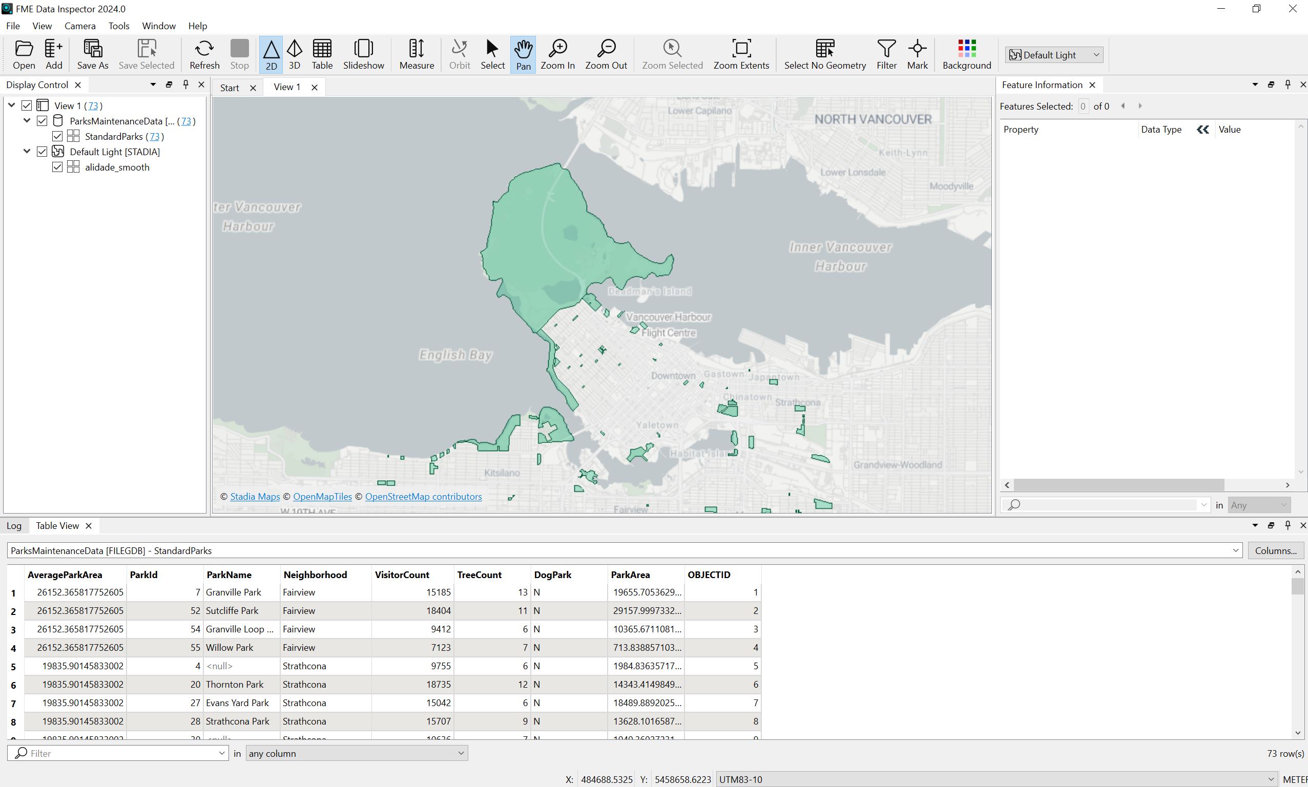 Alternatively, you can open the dataset in the FME Data Inspector: