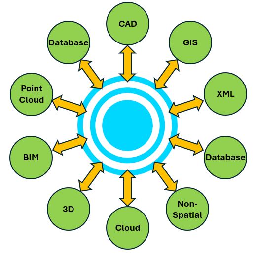 At the heart of FME is an engine that supports an array of data types, formats, and applications: Excel, CSV, XML, and databases, as well as various types of mapping formats including GIS, CAD, BIM, [and many more](https://www.safe.com/integrate/).